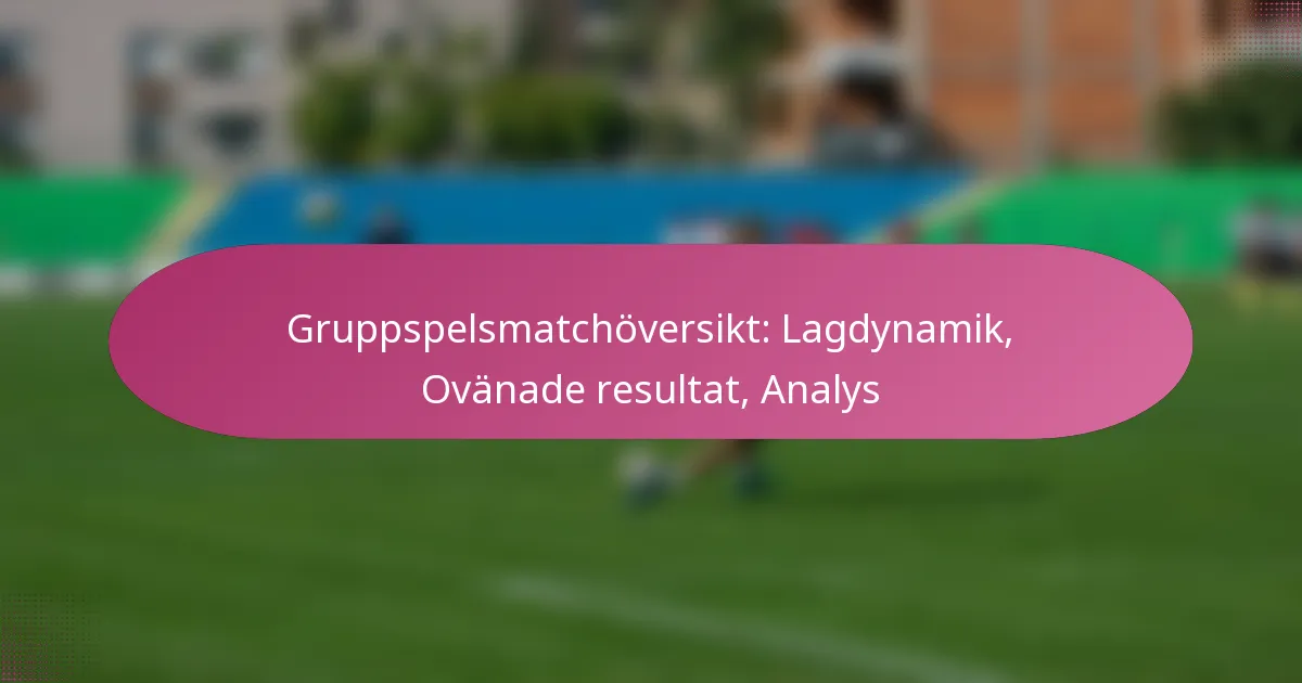 De viktigaste lagdynamikerna i gruppspelsmatcher kretsar kring samarbete, spelarinteraktioner, tränarstrategier, lagmoral och påverkan av skador. Att förstå dessa element kan ge insikter i hur lag presterar och anpassar sig under kritiska matcher.