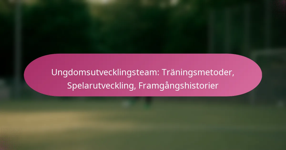 Ungdomsutvecklingsteam använder en mängd olika träningsmetoder för att förbättra spelarens färdigheter, förståelse för spelet, fysisk kondition och mental motståndskraft. Dessa metoder fokuserar på tekniska övningar, taktiska tillvägagångssätt, fysisk träning, mental träning och tränarfilosofier som styr den övergripande utvecklingsprocessen.